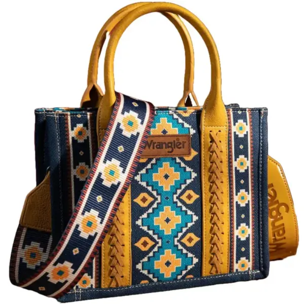 CARTERA WRANGLER, AZUL CON TEJIDO, MEDIANA